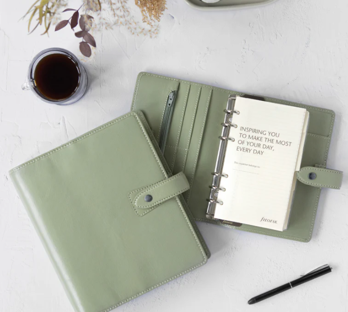 Left Hand Side Details: 4 card pockets, 2 vertical slip pockets, leather pen loop, vertical zipped pocket